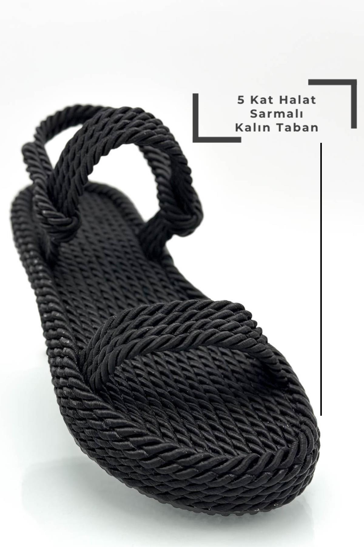 Beş Kat Sarmalı Halatlı Kadın Sandalet Yazlık Sandalet Siyah (C2-S0026-00020)