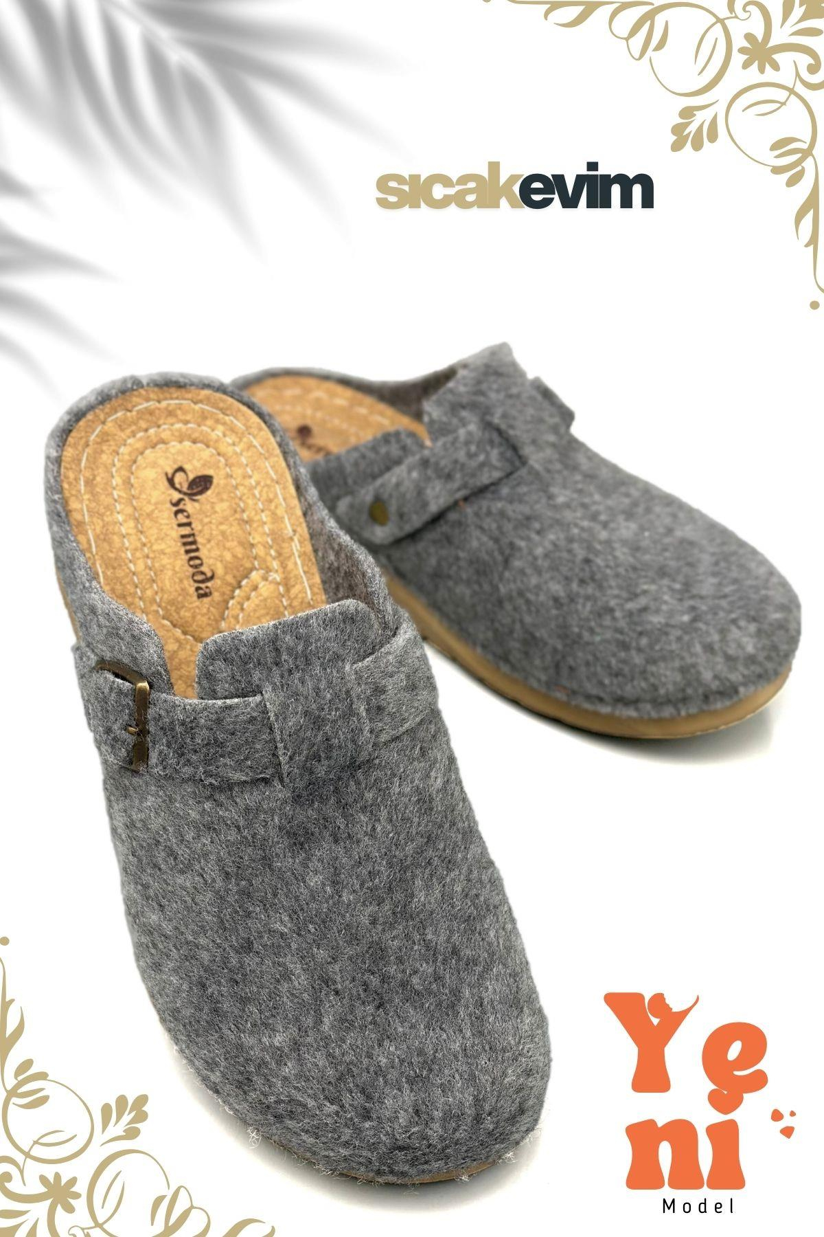 SERMODA , Ev Terliği , Erkek Ev Terliği  – Poli Taban Hafif Tabanlı Sıcak Tutan Halı Terliği Gri