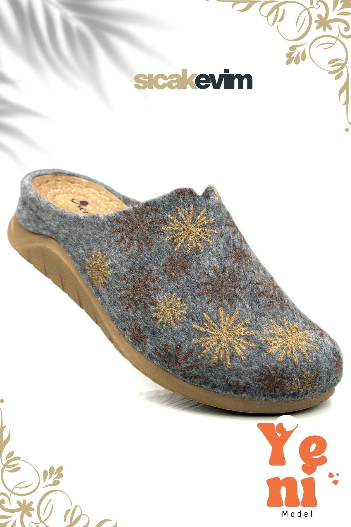 SERMODA , Ev Terliği , Kadın Ev Terliği  – Poli Taban Hafif Tabanlı Sıcak Tutan Ev Terliği Gri