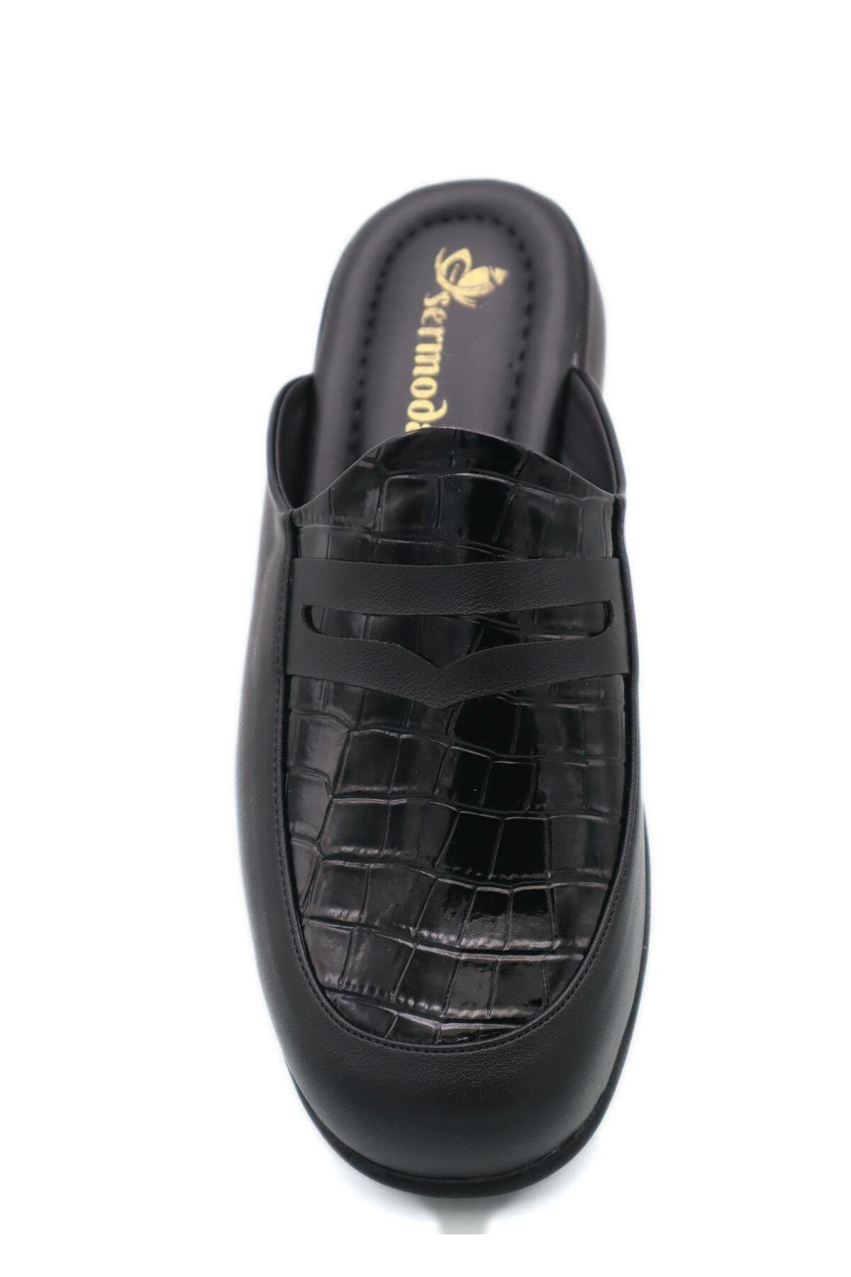 SERMODA , Ev Terliği , Yumuşak Taban Tarz Damat veya Misafir Terliği M Croco Siyah